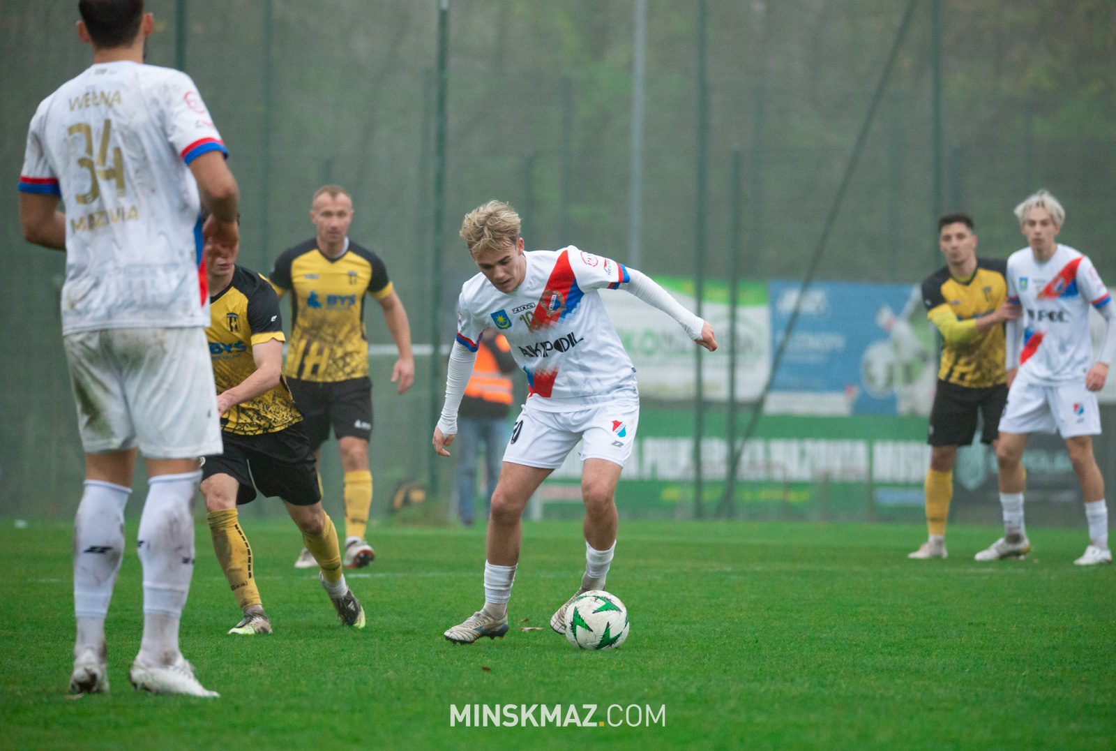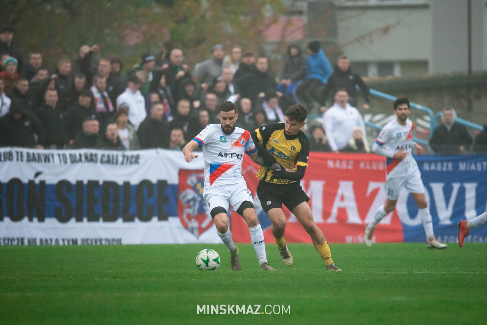 Duma Mińska, niesiona fantastycznym dopingiem kilkusetosobowej grupy kibiców, miała kolejną okazję w 31 minucie, kiedy po świetnym podaniu Juliana Świątka niecelnie uderzał Eryk Więdłocha. W 43 minucie przed polem karnym faulowany był Julian Świątek, sam poszkodowany podszedł do piłki, jednak strzał nie był tak precyzyjny jak w pucharze z Tygrysem…