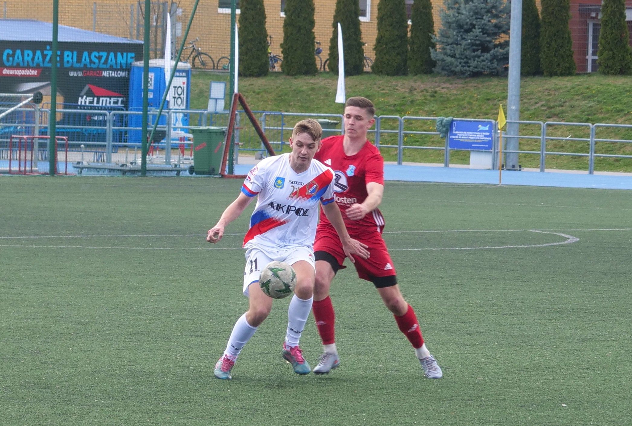 Podopieczni trenera Marcina Klukowskiego rozpoczęli bardzo dobrze. Po krótkim rozegraniu rzutu rożnego przez Kacpra Skwierczyńskiego i Daniana Pavlasa, główkował Tomasz Lewandowski, piłkę sprzed linii końcowej zagrał do tyłu Michał Podpora, a do siatki wbił ją Kuba Mikołajczuk. Goście odpowiedzieli w 8 minucie strzałem z wolnego; dobrze interweniował Mikołaj Kiliszek. Z kolei w 16 minucie uderzał Adrian Wielgolaski, ale dobrze ustawiony był bramkarz Drogowca.
